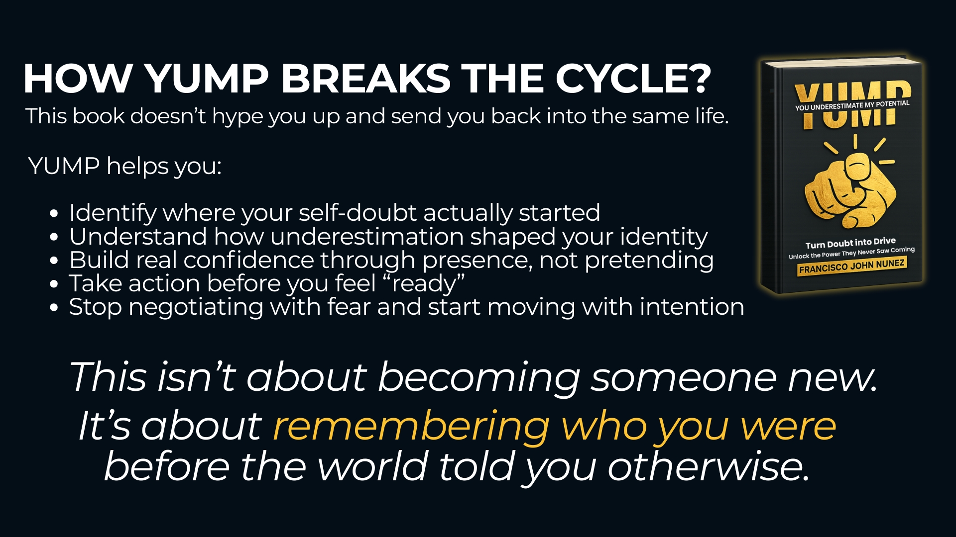 That’s what YUMP activates. It’s a system that turns untapped potential into action, doubt into confidence, and ordinary people into the version of themselves they always knew was possible.